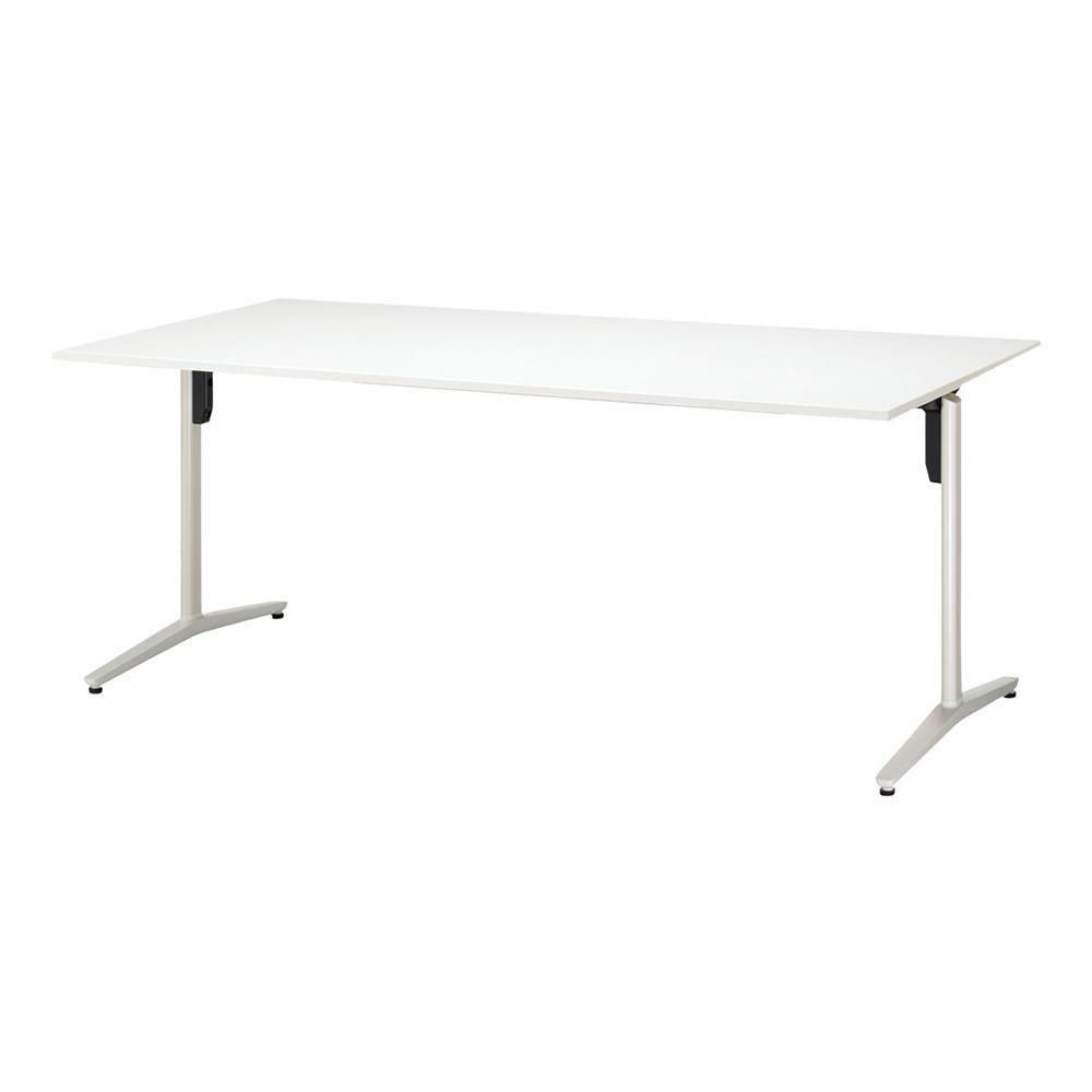 こちらの商品は、長方形天板、T字脚、アジャスター、配線なし、幅1800×奥行750×高さ720mmタイプです。脚カラーは3色、天板カラーは8色から選べます。
