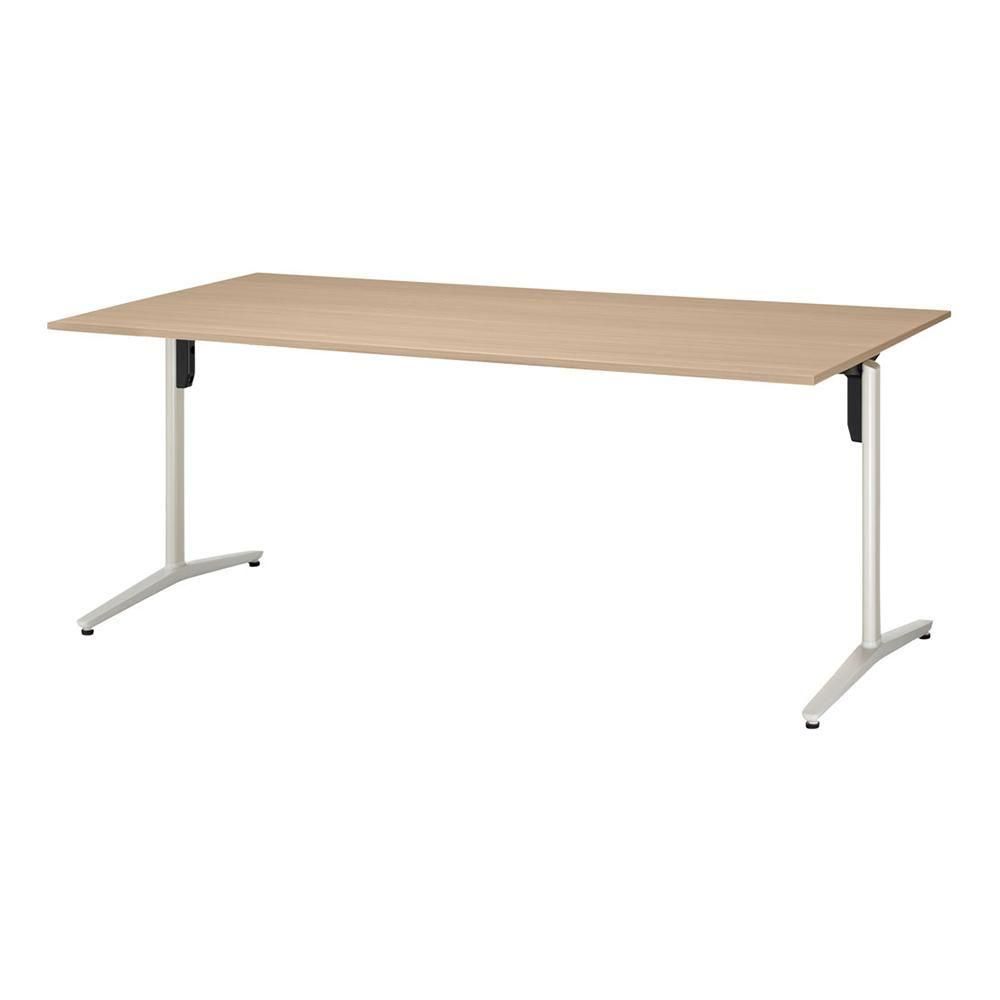 こちらの商品は、長方形天板、T字脚、アジャスター、配線なし、幅2100×奥行900×高さ720mmタイプです。脚カラーは3色、天板カラーは8色から選べます。