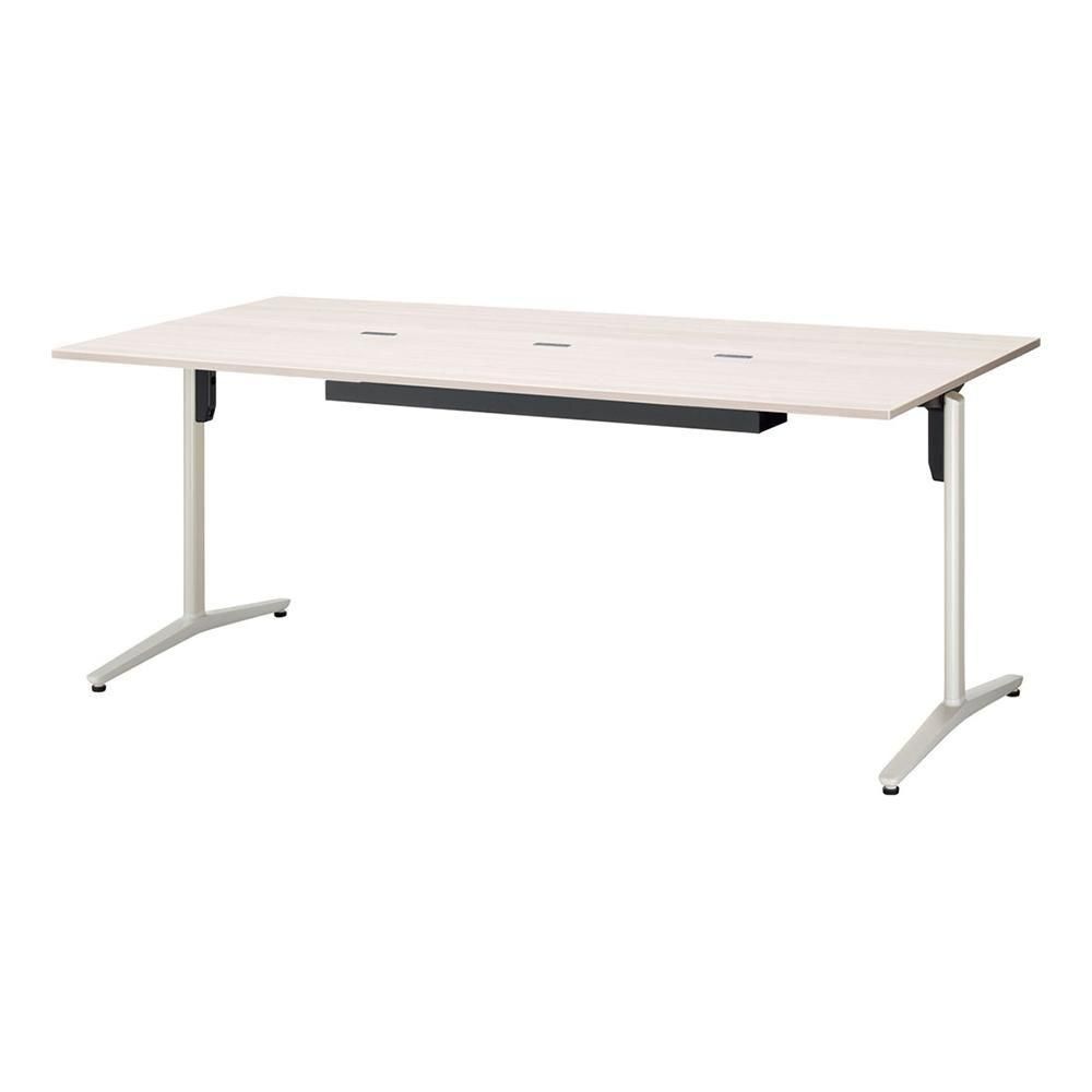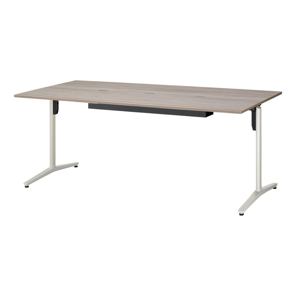 UCHIDA(ウチダ) ミーティングテーブル NEUT T字脚タイプは、豊富な天板柄と足の仕上げで多様なしつらえを演出します。T字脚は天板下が広々としており、伸びやかで足抜けがよく、出入り(離着席)がしやすいのがメリットです。人の出入りが多い打ち合わせや来客スペースなどでよく使われています。