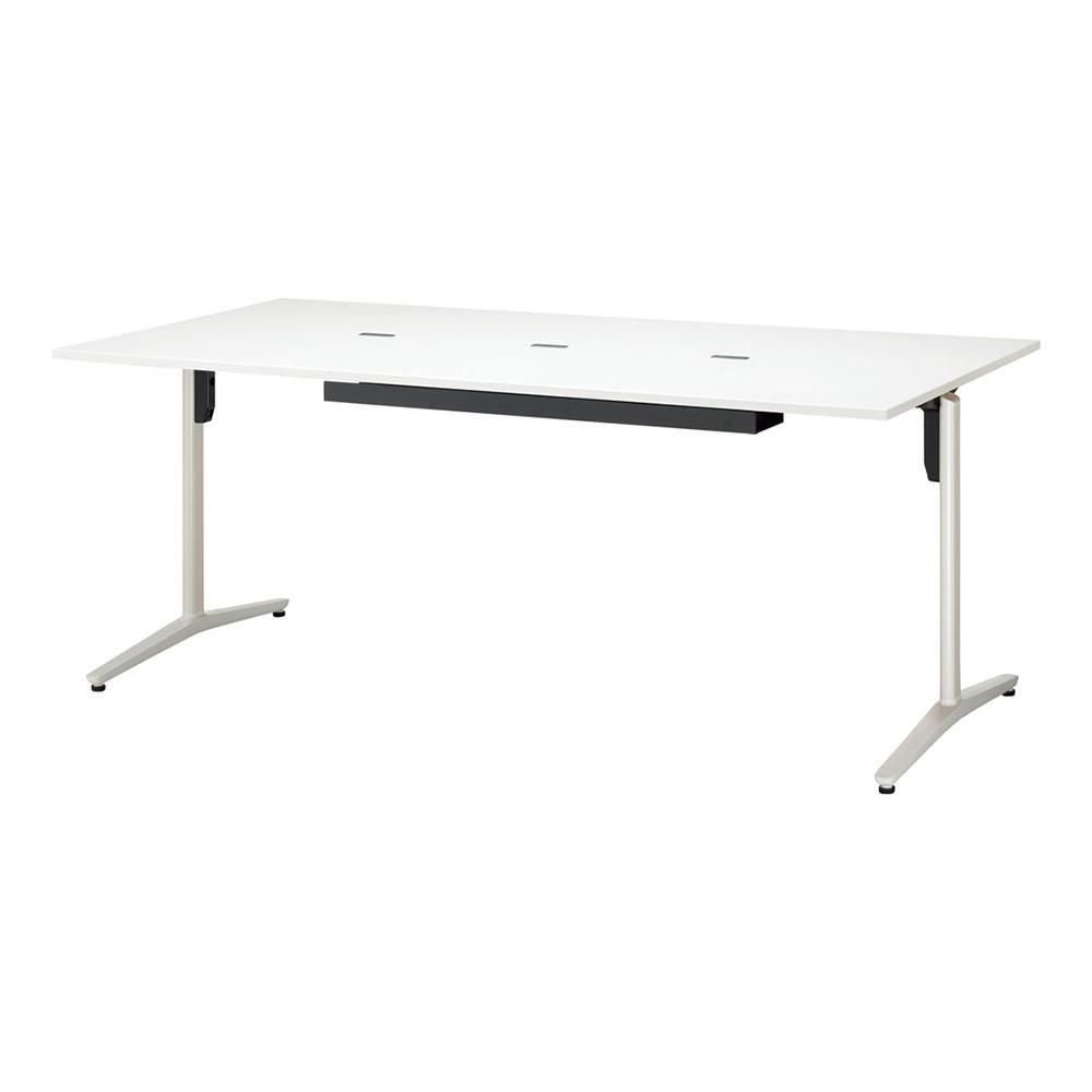 UCHIDA(ウチダ) ミーティングテーブル NEUT T字脚タイプは、豊富な天板柄と足の仕上げで多様なしつらえを演出します。T字脚は天板下が広々としており、伸びやかで足抜けがよく、出入り(離着席)がしやすいのがメリットです。人の出入りが多い打ち合わせや来客スペースなどでよく使われています。