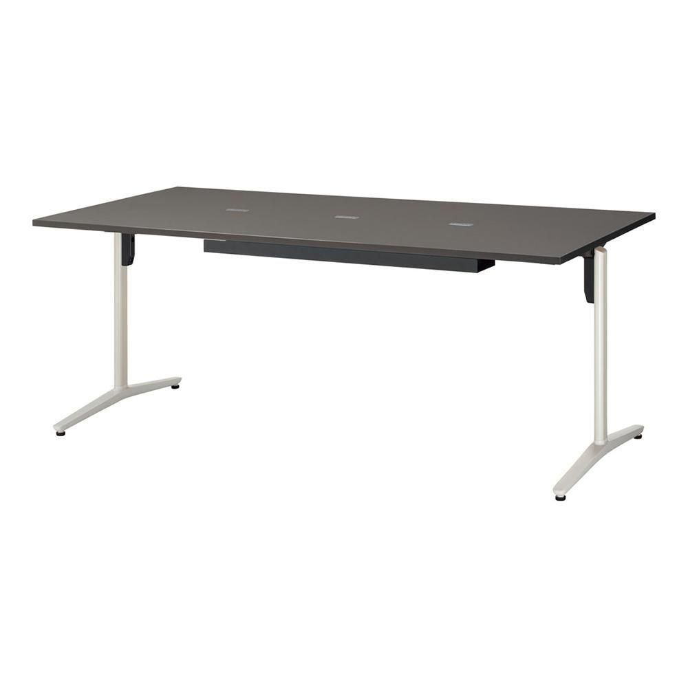 こちらの商品は、長方形天板、T字脚、アジャスター、埋め込み電源、幅1500×奥行750×高さ720mmタイプです。脚カラーは3色、天板カラーは8色から選べます。