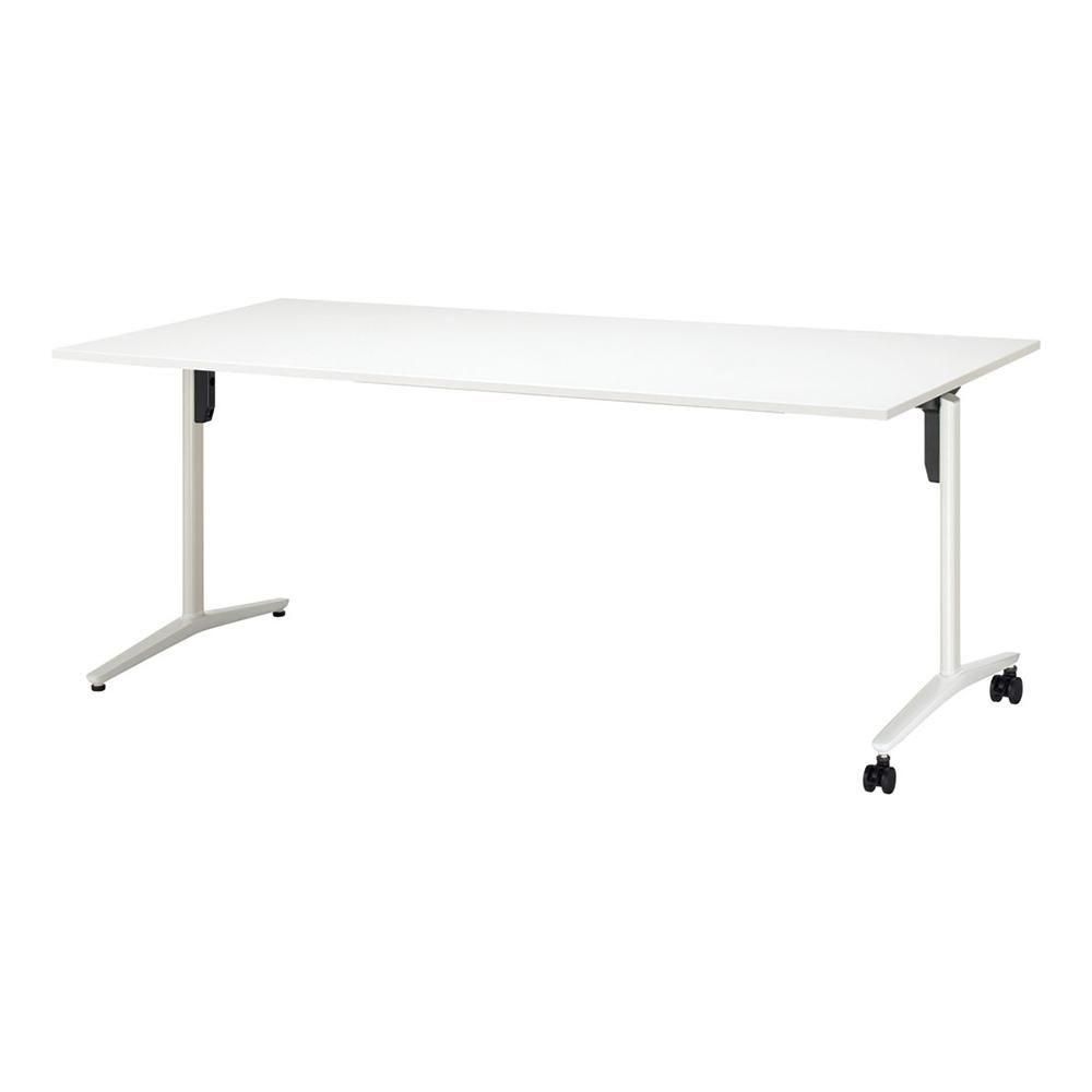 こちらの商品は、長方形天板、T字脚、片側キャスター、配線なし、幅1200×奥行750×高さ720mmタイプです。脚カラーは3色、天板カラーは8色から選べます。