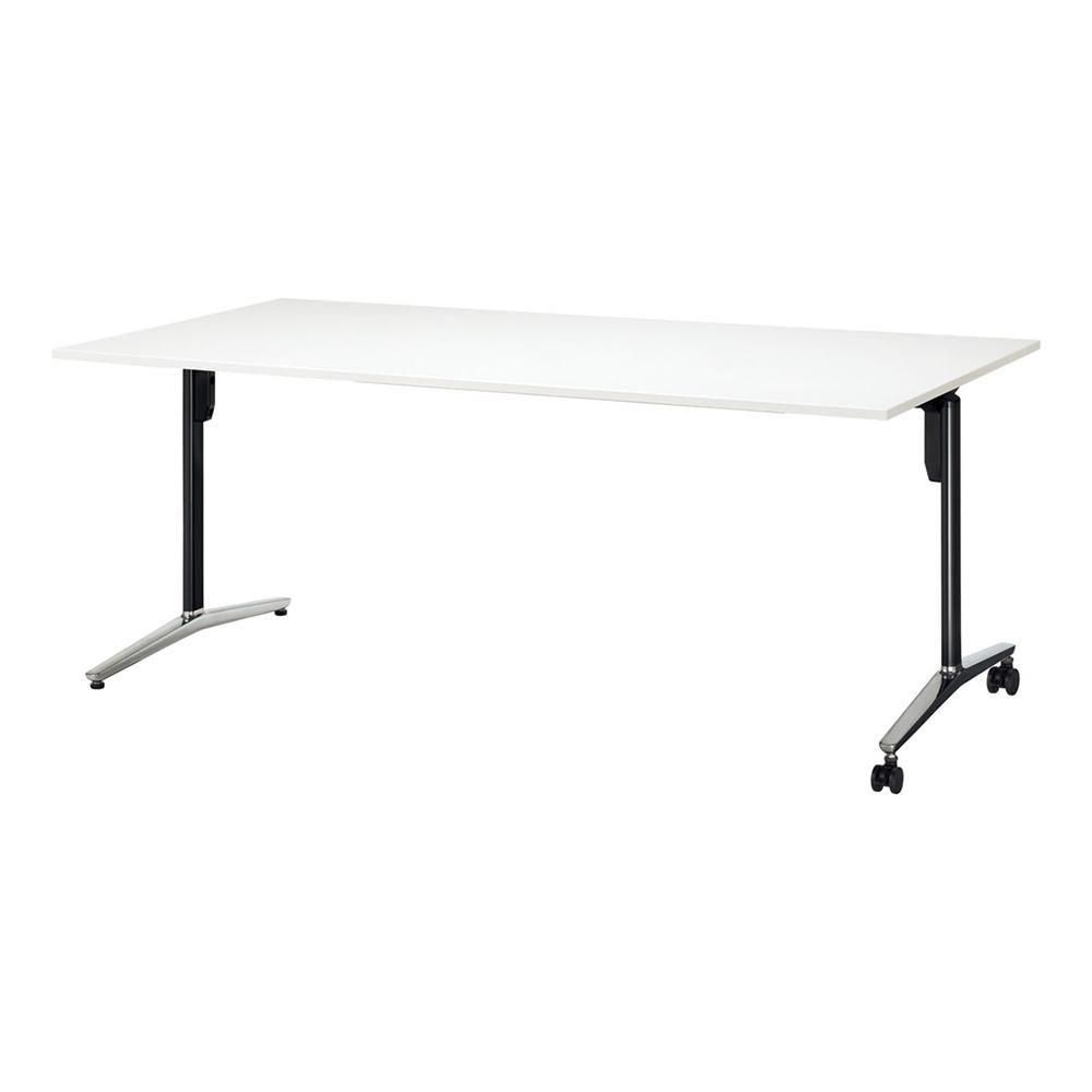 こちらの商品は、長方形天板、T字脚、片側キャスター、配線なし、幅1500×奥行900×高さ720mmタイプです。脚カラーは3色、天板カラーは8色から選べます。