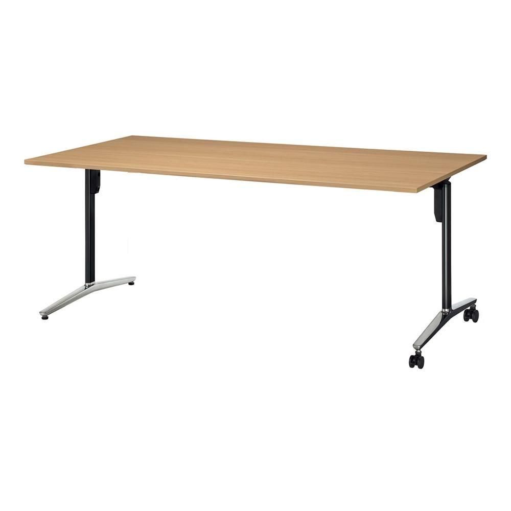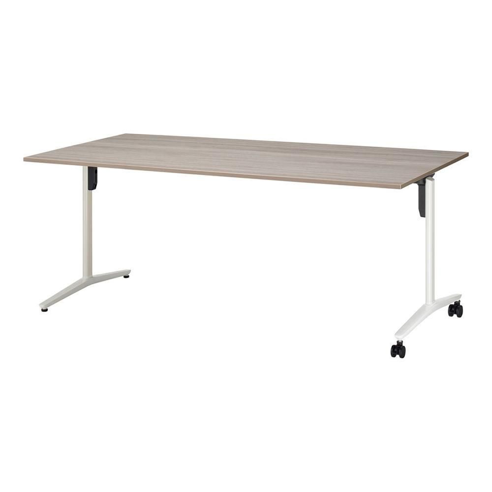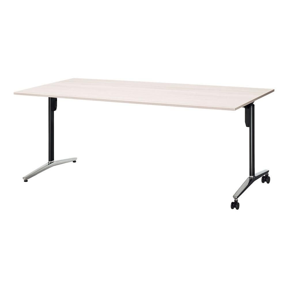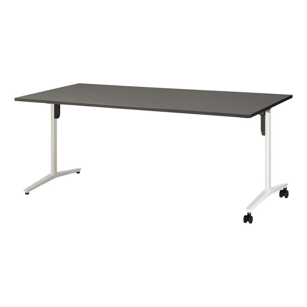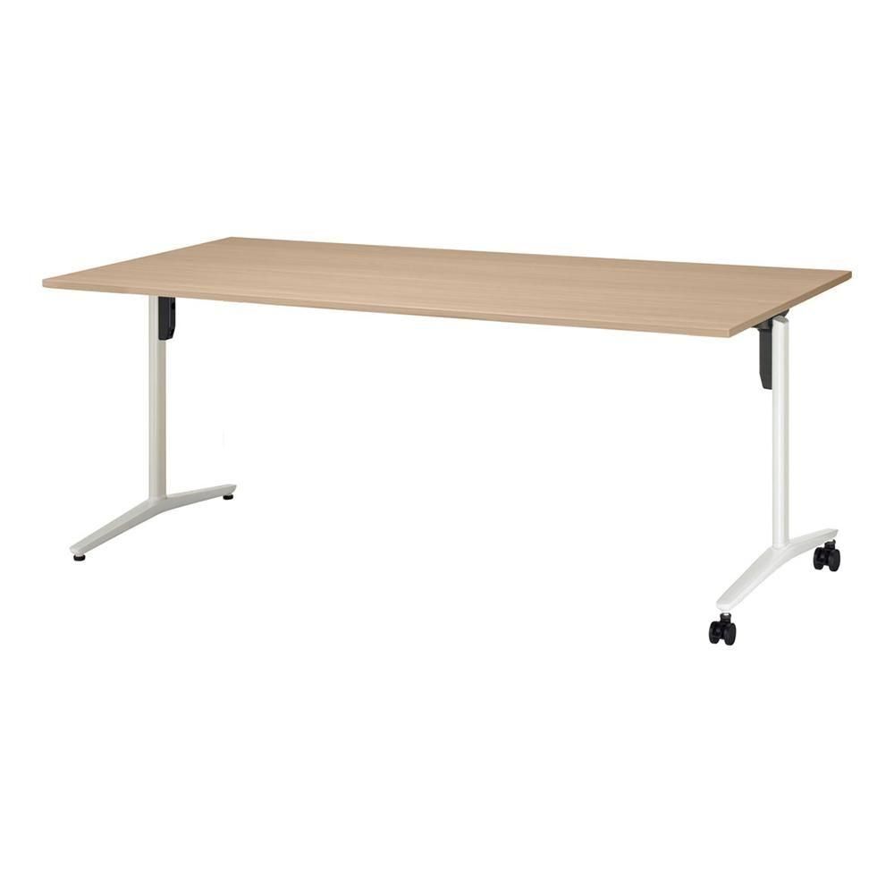 こちらの商品は、長方形天板、T字脚、片側キャスター、配線なし、幅2100×奥行900×高さ720mmタイプです。脚カラーは3色、天板カラーは8色から選べます。