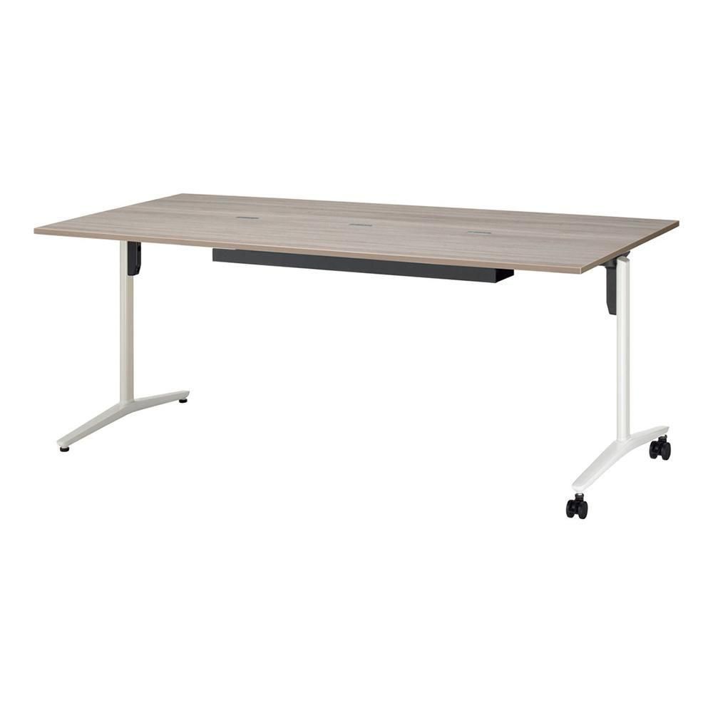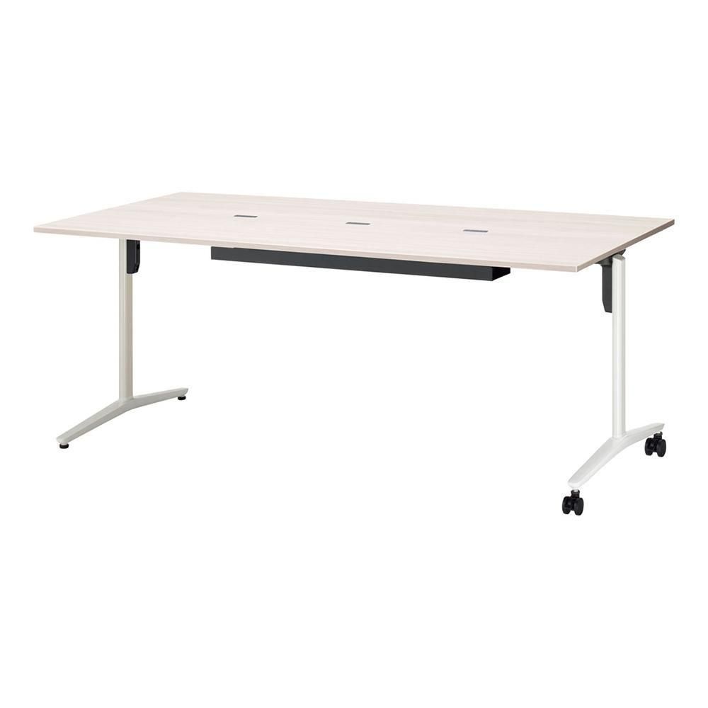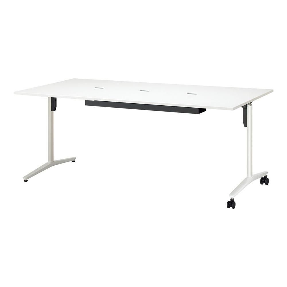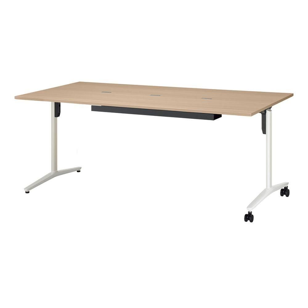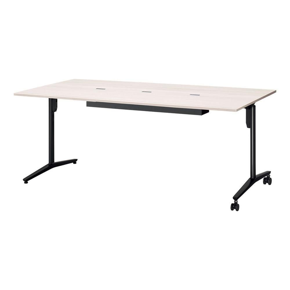 こちらの商品は、長方形天板、T字脚、片側キャスター、埋め込み電源、幅1200×奥行750×高さ720mmタイプです。脚カラーは3色、天板カラーは8色から選べます。