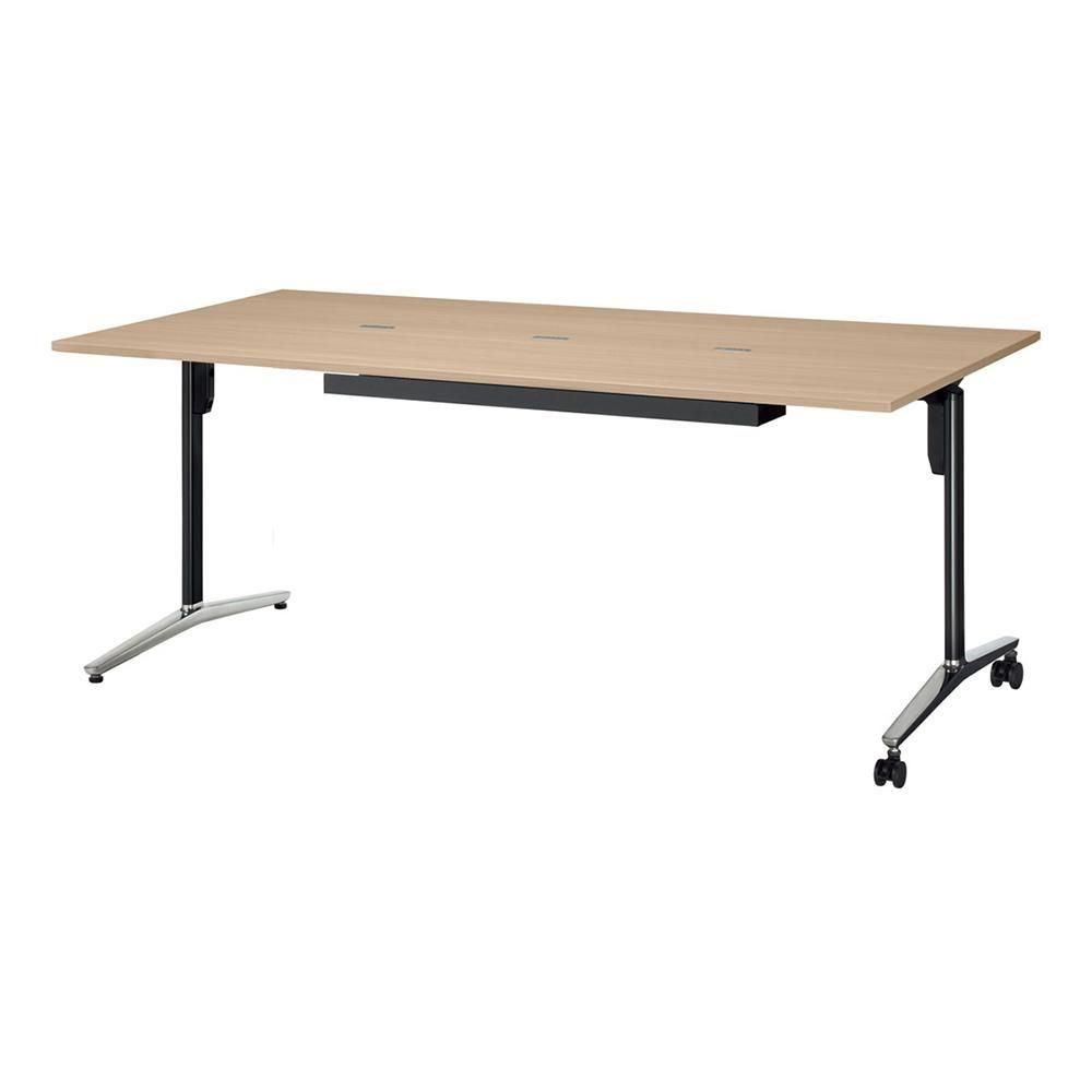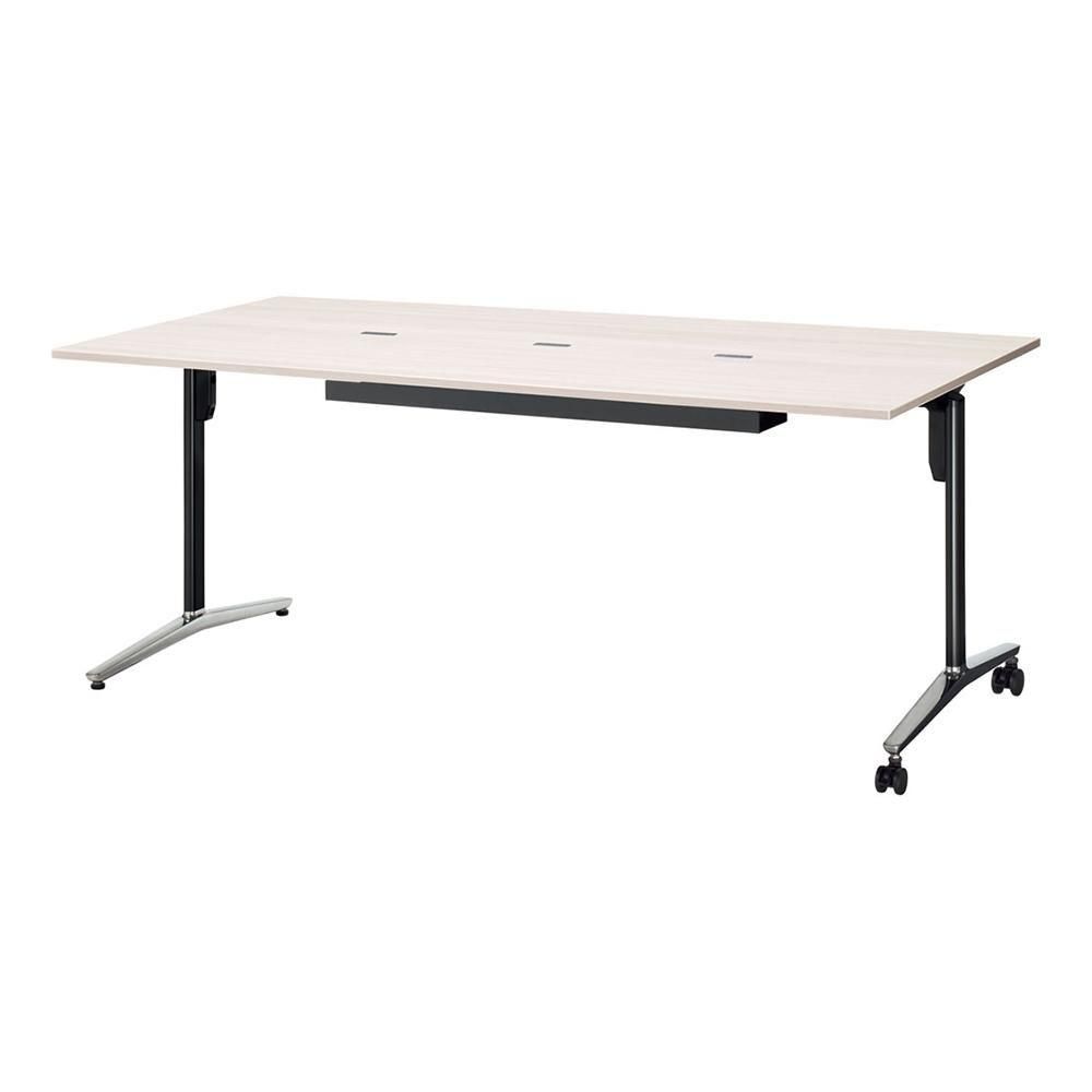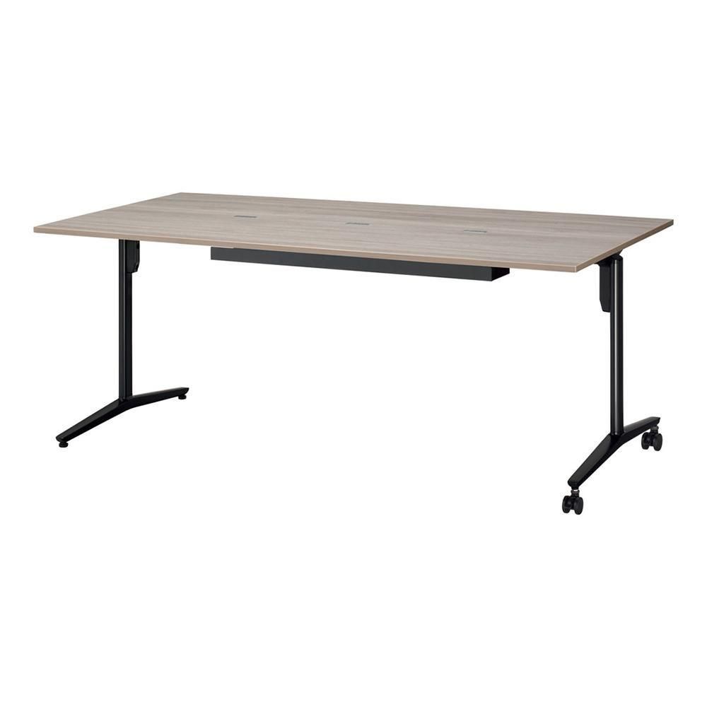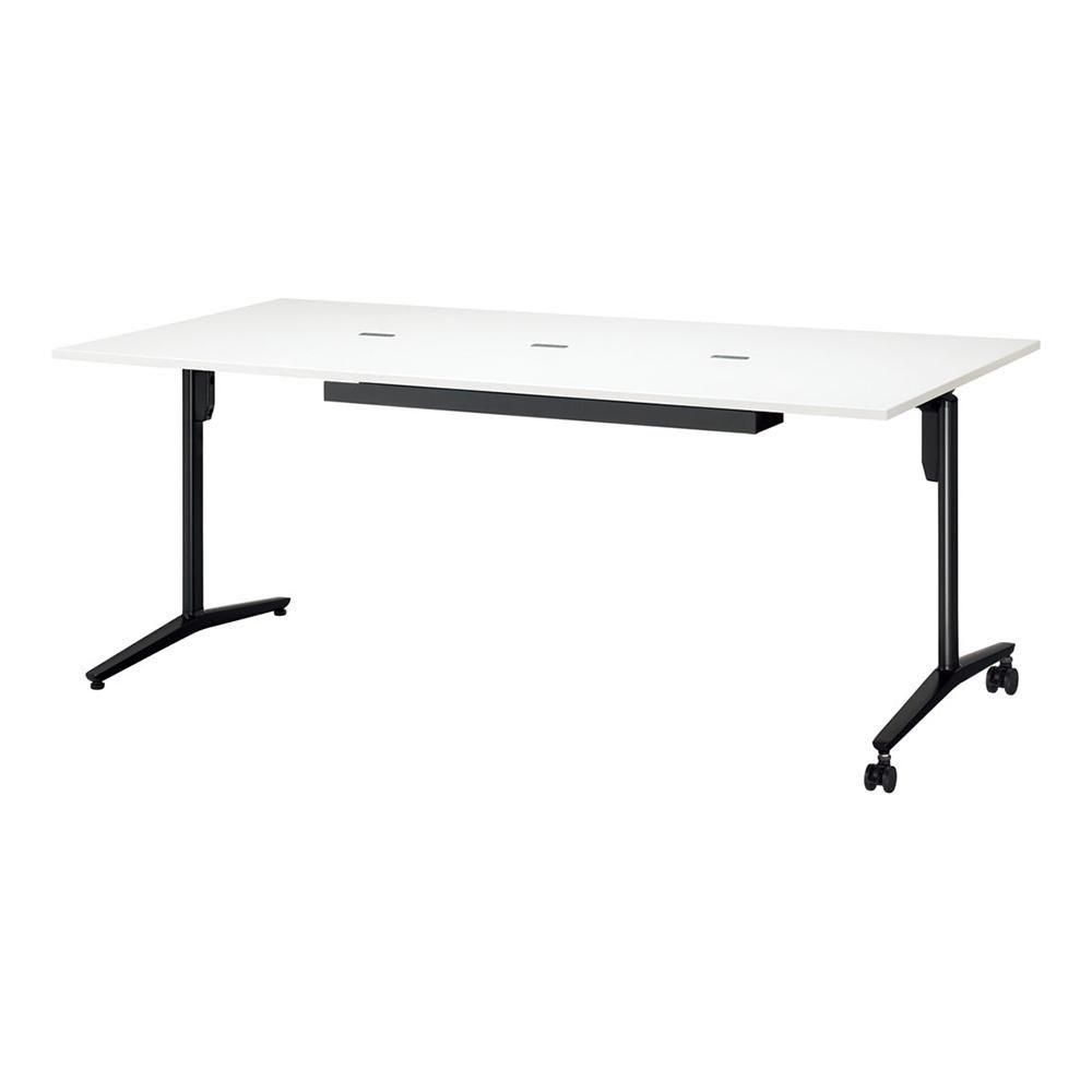 こちらの商品は、長方形天板、T字脚、片側キャスター、埋め込み電源、幅1800×奥行900×高さ720mmタイプです。脚カラーは3色、天板カラーは8色から選べます。