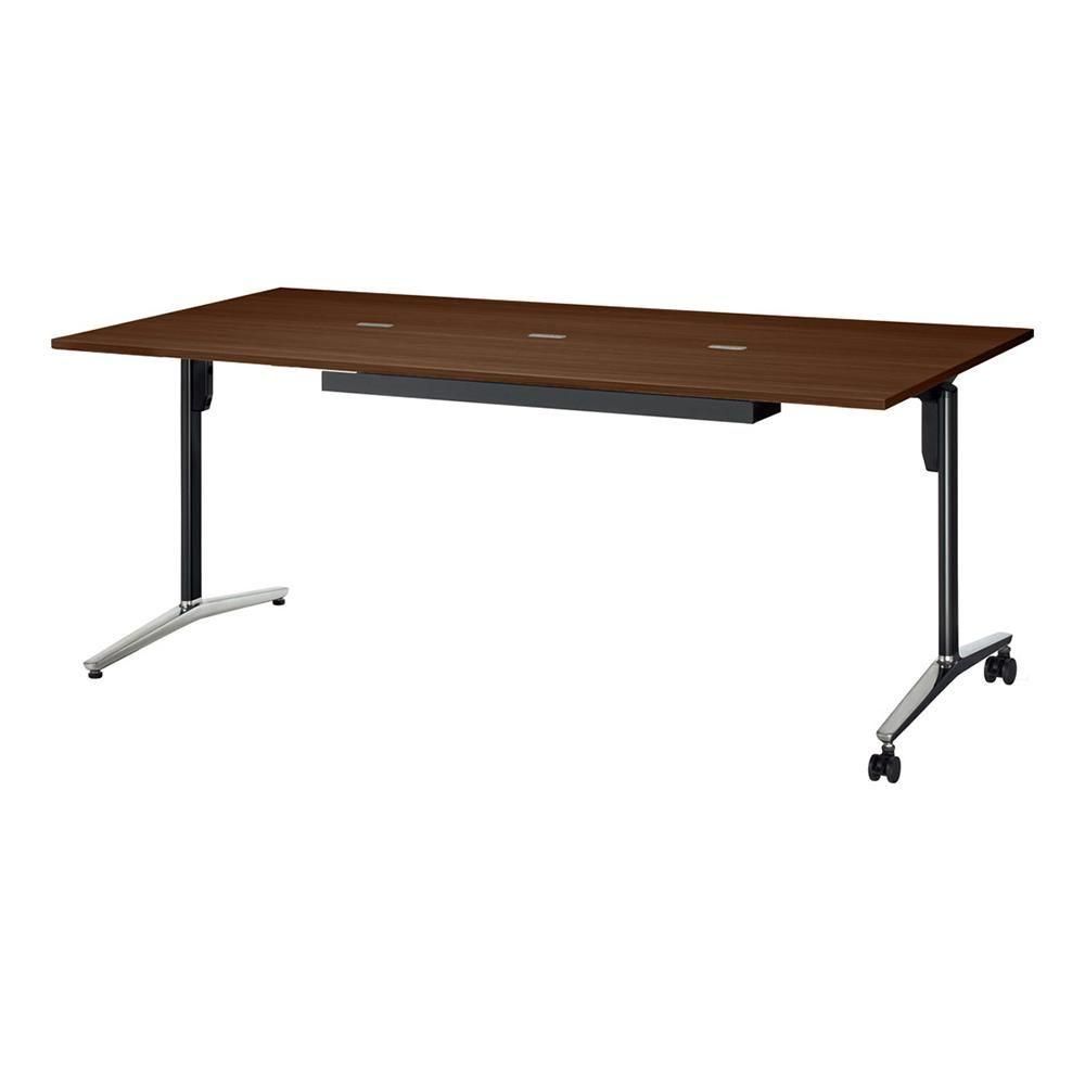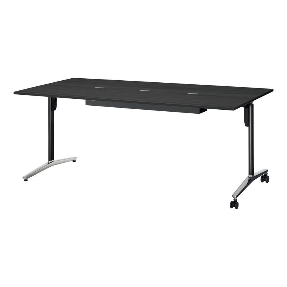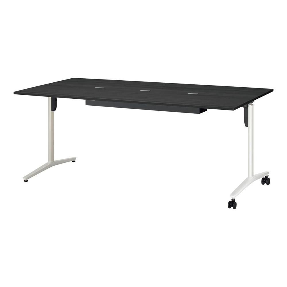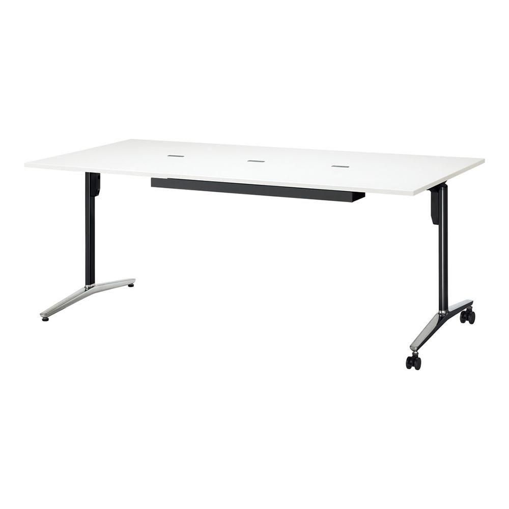こちらの商品は、長方形天板、T字脚、片側キャスター、埋め込み電源、幅1800×奥行900×高さ720mmタイプです。脚カラーは3色、天板カラーは8色から選べます。