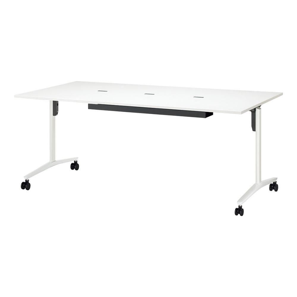 こちらの商品は、長方形天板、T字脚、キャスター、埋め込み電源、幅1200×奥行750×高さ720mmタイプです。脚カラーは3色、天板カラーは8色から選べます。