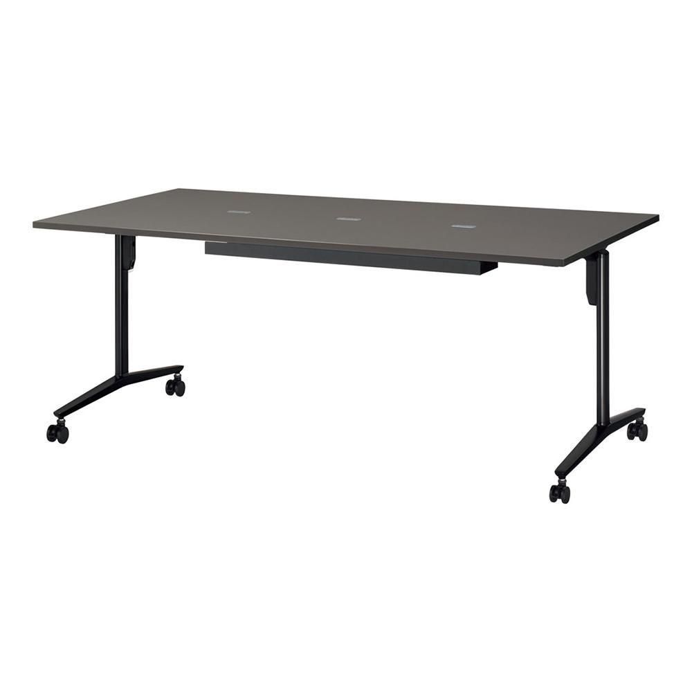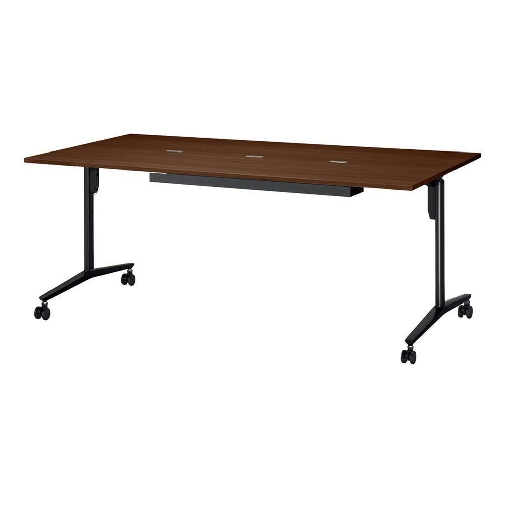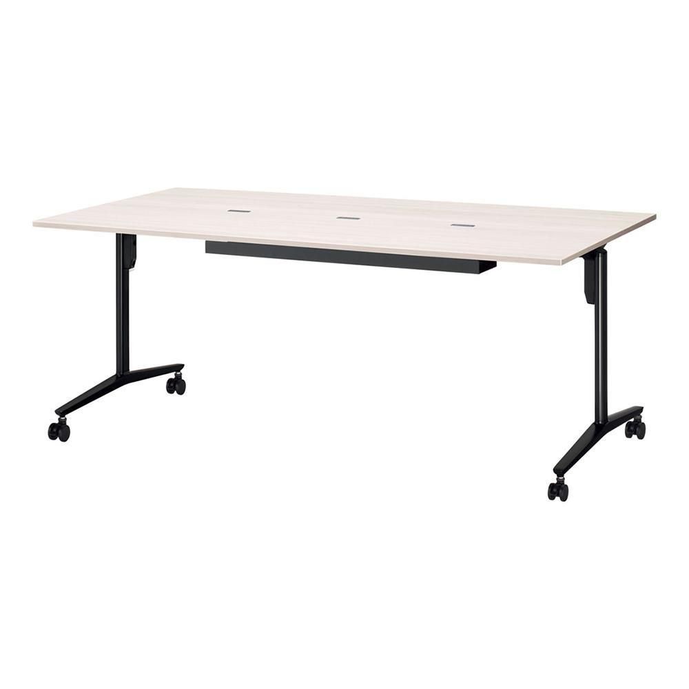 こちらの商品は、長方形天板、T字脚、キャスター、埋め込み電源、幅2100×奥行900×高さ720mmタイプです。脚カラーは3色、天板カラーは8色から選べます。