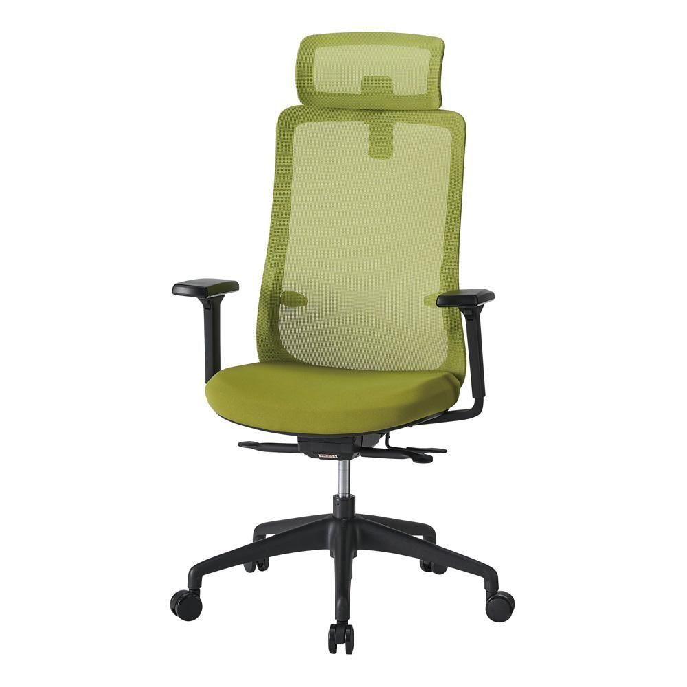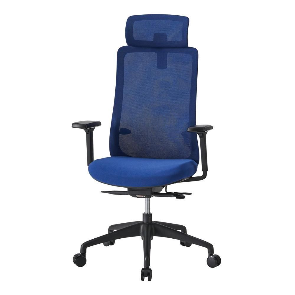 ハイバック、ヘッドレスト、可動肘、座面スライド、ロッキングと、マネージャーズチェアの機能を持つハイコスパのオフィスチェアです。