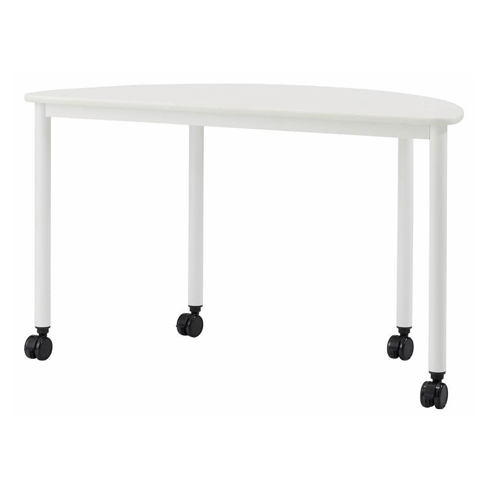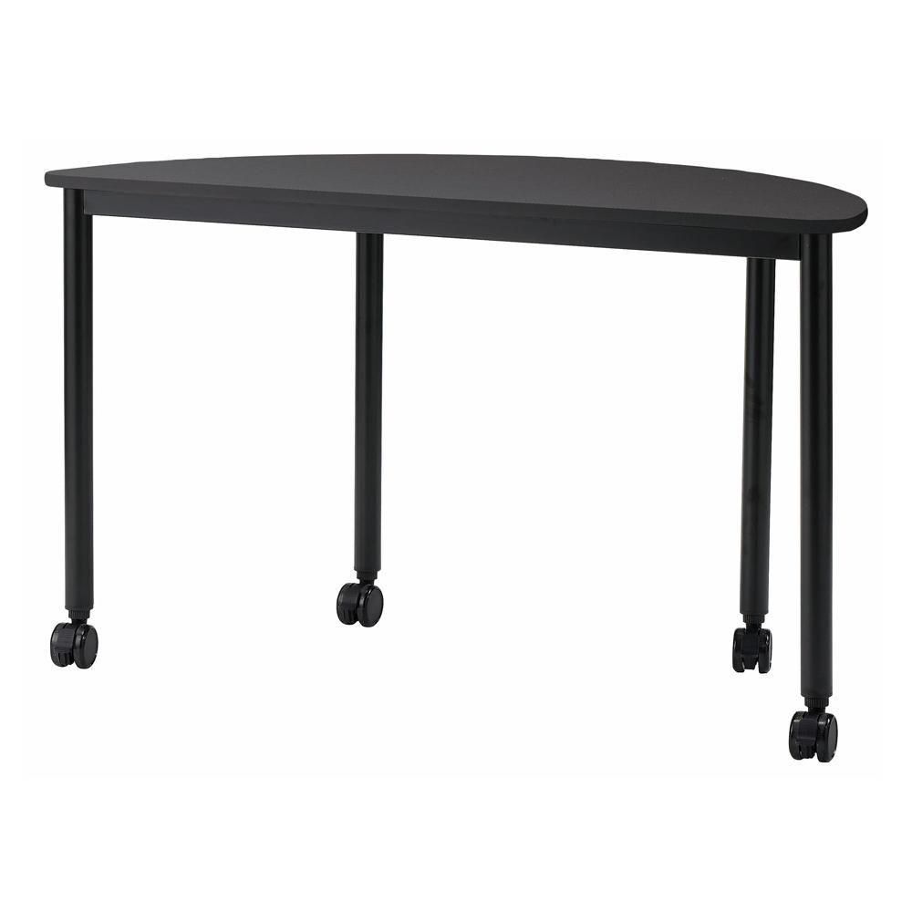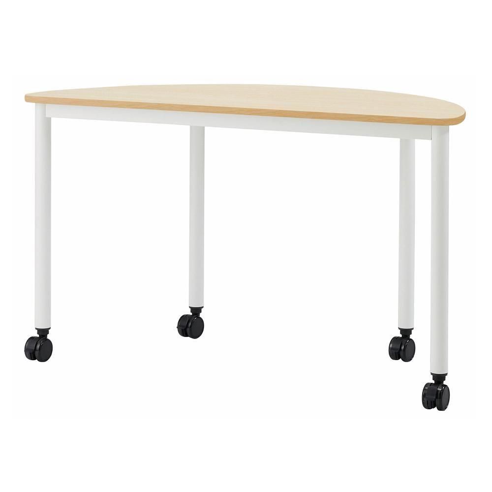こちらの商品は、半円テーブル、幅1200×奥行600×高さ720mmタイプです。フレーム・脚は2色、天板は4色から選べます。