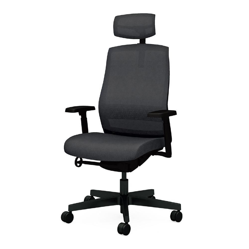 こちらの商品は、クロス調メッシュ、ヘッドレスト付ハイバック、アジャスト肘、樹脂脚タイプです。背はクロス調メッシュ、座は布張りで、カラーは3色から選べます。