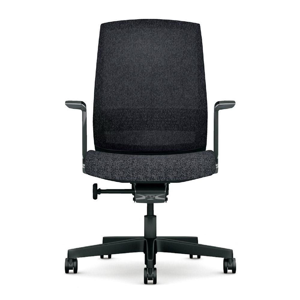 こちらの商品は、クロス調メッシュ、ハイバック、アルミ固定肘、樹脂脚タイプです。背はクロス調メッシュ、座は布張りで、カラーは3色から選べます。