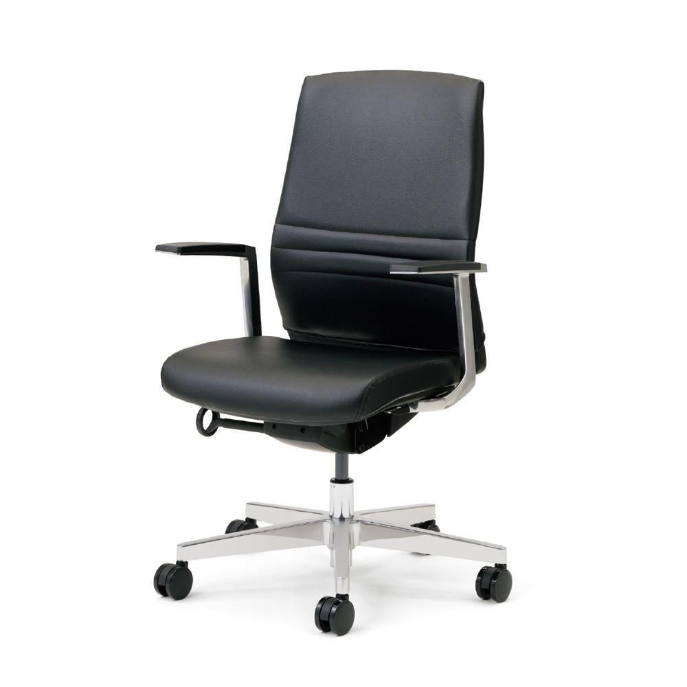 こちらの商品は、ビニルレザー、ハイバック、アルミ固定肘、アルミ脚タイプです。カラーはブラックです。