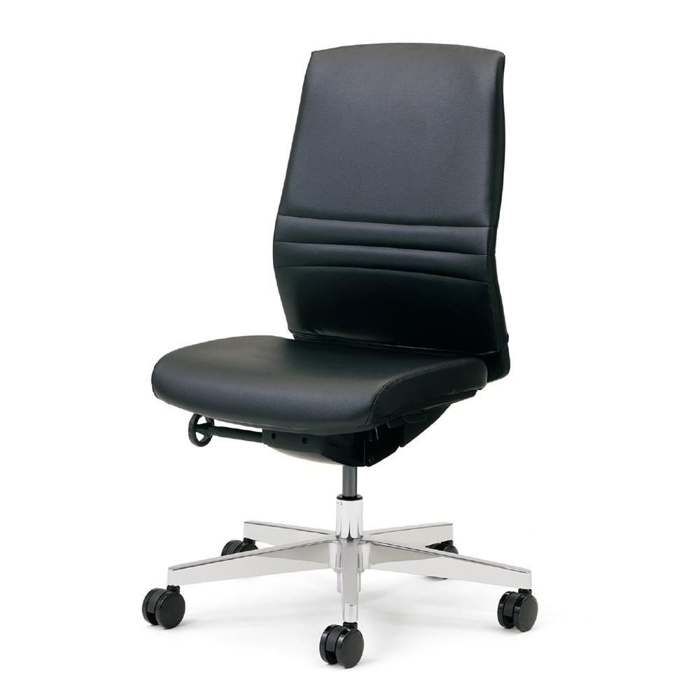 こちらの商品は、ビニルレザー、ハイバック、肘なし、アルミ脚タイプです。カラーはブラックです。