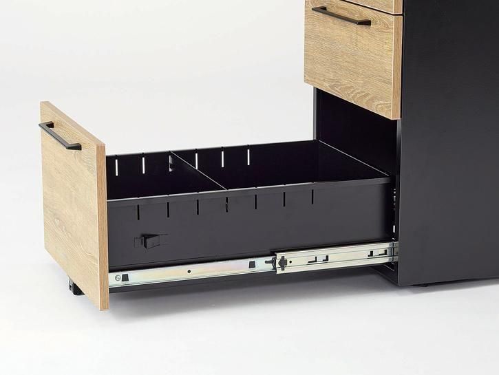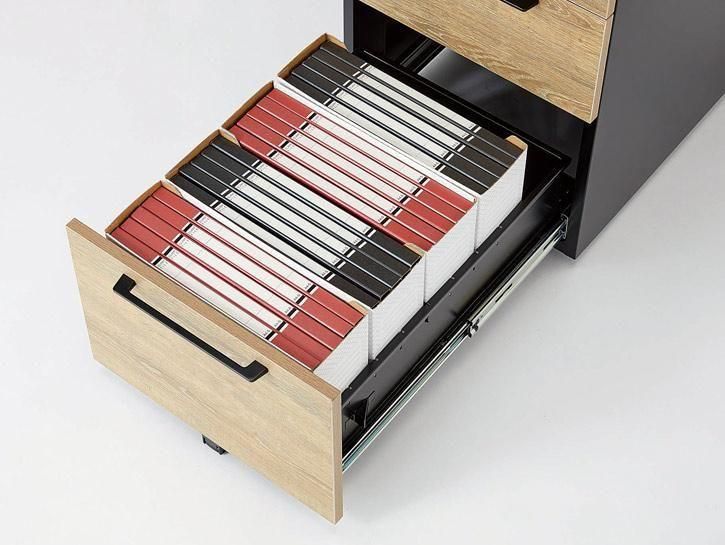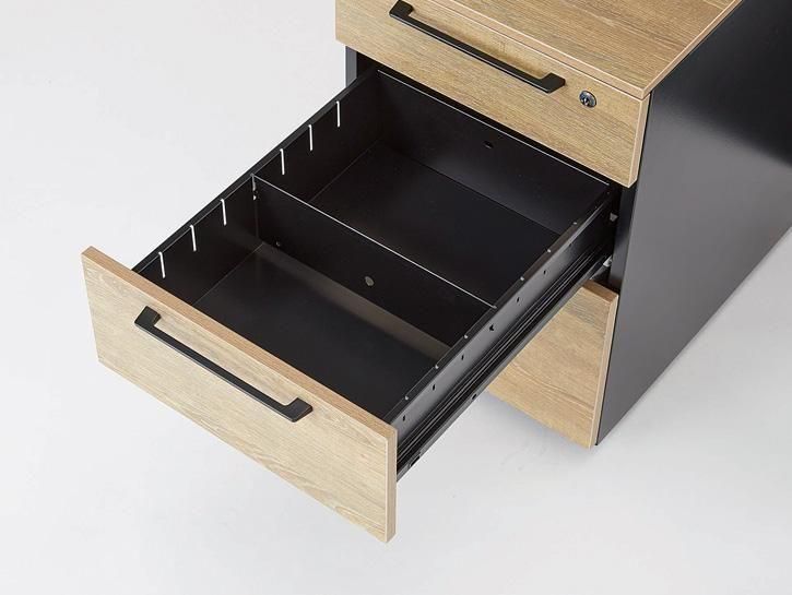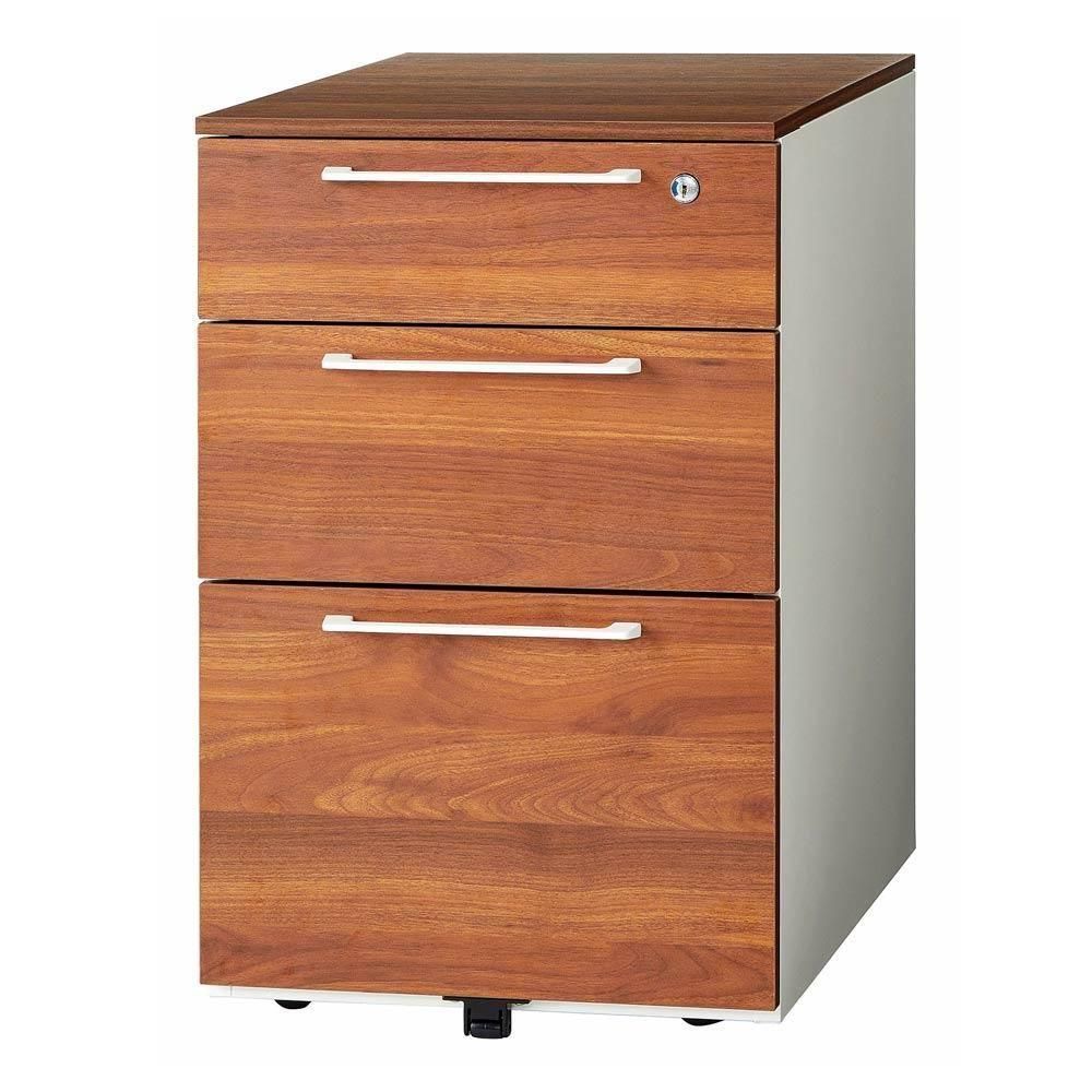 井上金庫 3段ワゴン HGSは、天板・鏡板部分は木製(メラミン貼り)を使用し、本体色と同色のハンドルを組み合わせて、デザイン性を向上させたスタイリッシュなキャスター付きのワゴンです。
