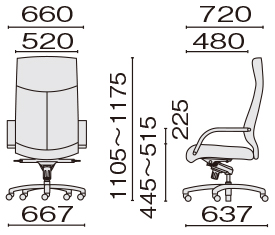 外形寸法:W660×D720×H1105〜1175(SH445〜515)mm