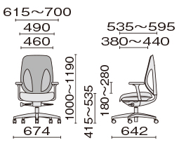 外形寸法:W615〜700×D642×H1000〜1190 (SH415〜535) mm