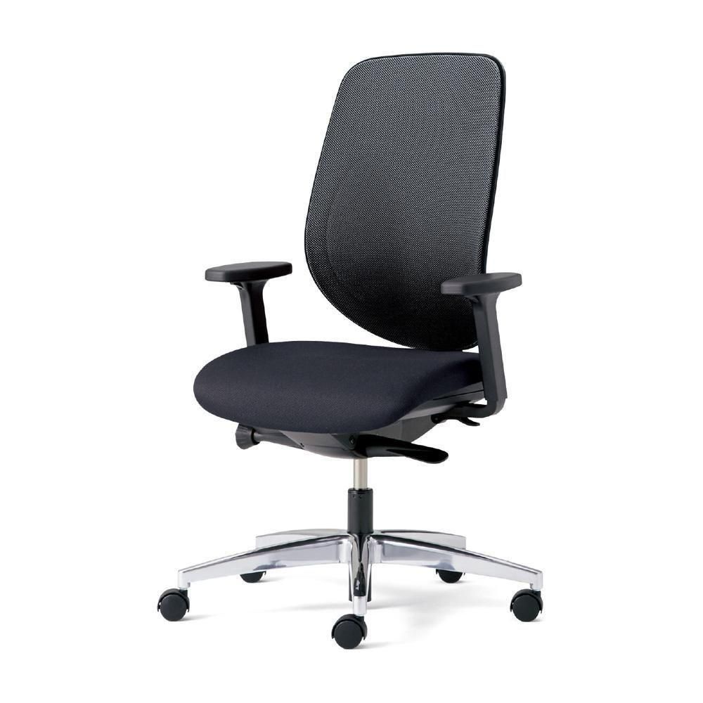 こちらの商品は、背・座コンビ色(ハンガーなし)、肘付、アルミ脚タイプです。 座(布張り)はブラック、背(メッシュ)は6色から選べます。